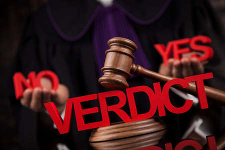 Verdict, Justice and law concept. Male judge in a courtroom