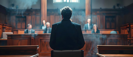 Rear view of a judge sitting at the table in a courtroom Generative AI
