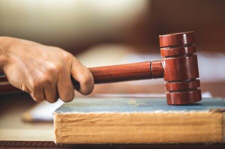 Judge held Wooden Hammer for Adjudge Judicial of Lawyer In the courtroom