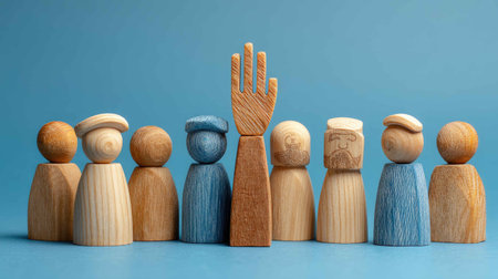 A creative assembly of wooden figurines in various colors symbolizes diversity and teamwork. The artful arrangement promotes unity and collaboration in communities.
