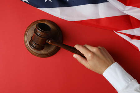 Law theme, gavel or mallet of the judge, lawyer enforcement officers, evidence-based cases taken into account in the court abount business, legislation.