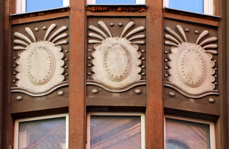 Architectural detail of the facade of an old building in Wroclaw, Poland