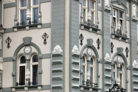 Architectural detail of a fresh restored old building in the center of Timisoara, Romania.