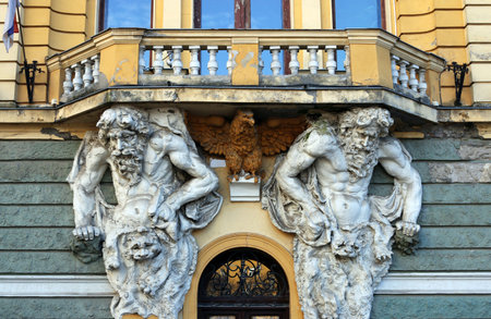 SUBOTICA / VOJVODINA, SERBIA - APRIL 28, 2018: Architecture detail in art nouveau style at one building build circa 1900. Subotica is second town in the region of Vojvodina.