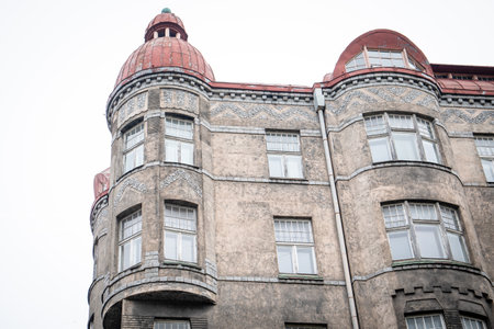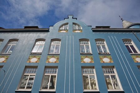 Detail of Art Nouveau (Jugenstil) building in the historic old town center of Riga, Latvia