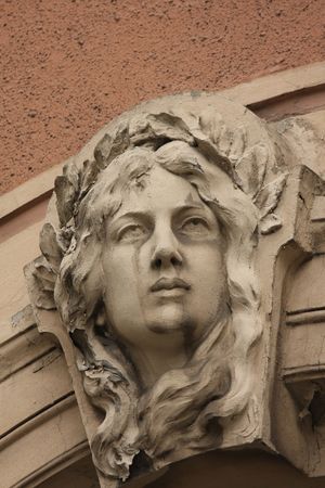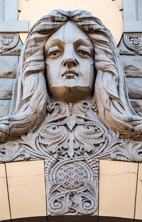 Detail of woman's head on Art Nouveau house in Riga