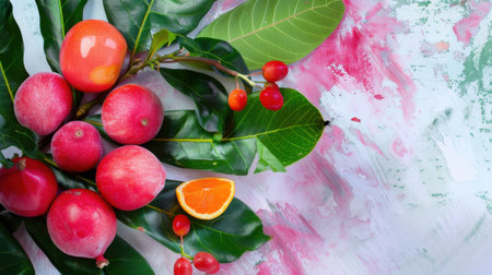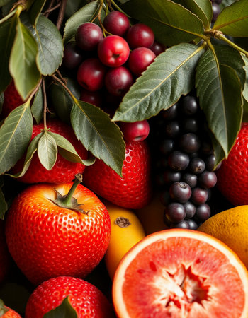 Vibrant display of succulent fruits with smooth skins and rich textures