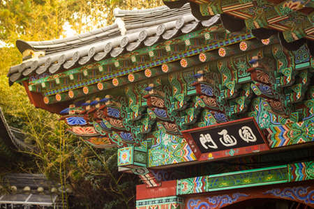Korean wooden traditional house with black tiles in Gyeongbokgung, also known as Gyeongbokgung Palace or Gyeongbok Palace, the main royal palace of Joseon dynasty.