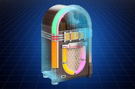 Visualization 3d cad model of jukebox, blueprint. 3D rendering