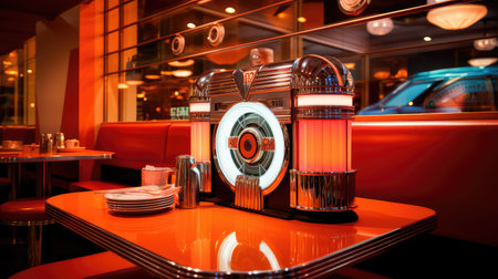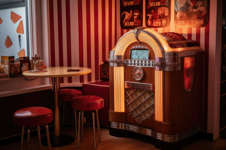 retro jukebox in a corner of the diner, created with generative ai