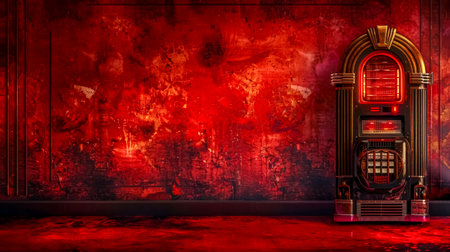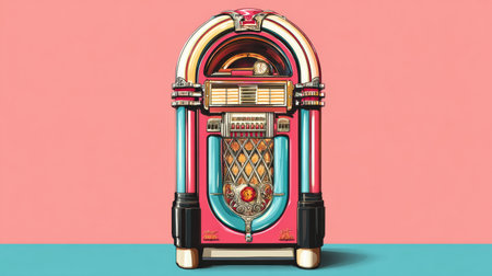 An AI generated illustration of a vintage-style jukebox with a vibrant red finish