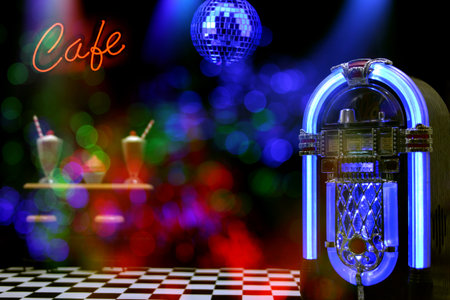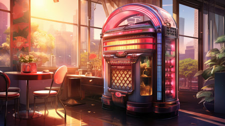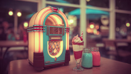 Vintage jukebox in retro diner ambiance