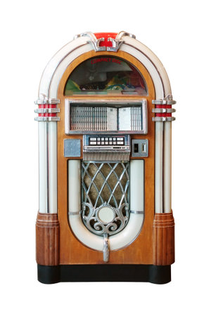 Old jukebox music player isolated on white background