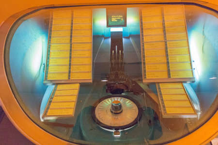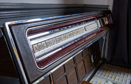 Italy, Brescia - December 24 2017: the view of the fragment of the vintage music machine AMI Lyric in Brescia Museum on December 24 2017 in Brescia, Lombardy, Italy.