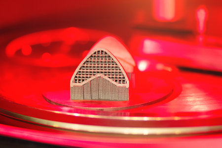 Object printed on metal 3d printer. A model created in a laser sintering machine close-up. DMLS, SLM, SLS technology.Progressive modern additive technology.