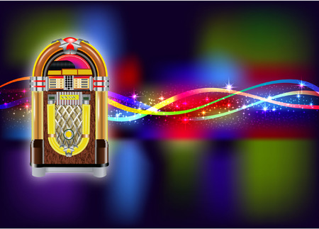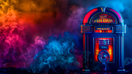 Vintage jukebox with vibrant smoke background