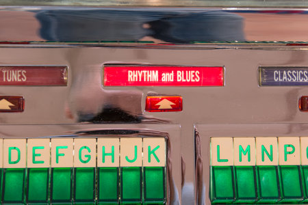 Old fashioned jukebox used to play records: rhythm and blues sign
