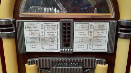 A replica of a 1950s jukebox allows guests to select and listen to popular songs of the era
