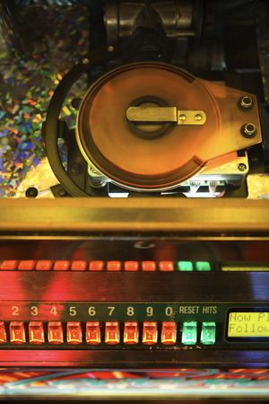 Close-up of vintage jukebox in cozy retro cafe interior
