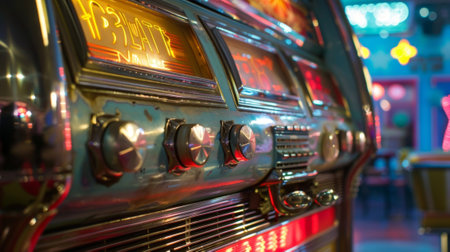 close-up of vintage jukebox in diner corner, created with generative ai