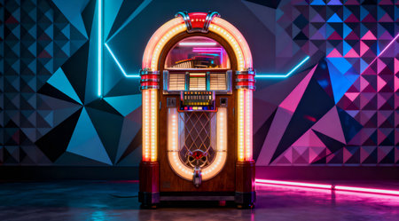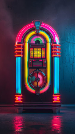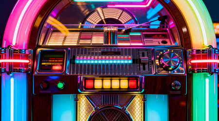 Vibrant retro jukebox with neon lights