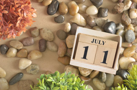 July 11, Month, Appointment date with a number cube design, colorful stone.