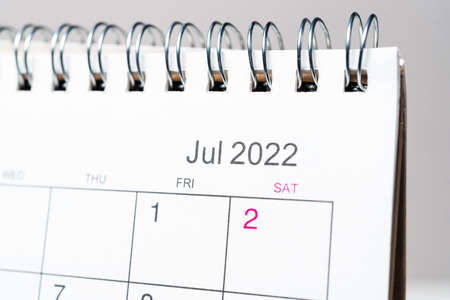 Blurred white August 2022 calendar with potted plant. New Year Concept