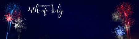 Happy 4th of July - Independence Day background banner panorama USA america holiday celebration greeting card - Blue red white firework on dark night sky