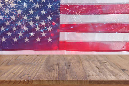 USA 4th of july independence day background of american flag with fireworks, Celebration Concept.