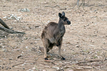 Australian western grey kangaroo with baby joey in pouch, new south wales, australia