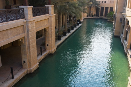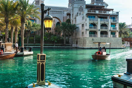 View along an Abra waterway in the Madinat Jumeirah hotel, Dubai.