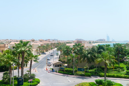 DUBAI, UAE - 16 JULY 2014: Luxury residential neighborhood on the Palm Jumeirah, an artificial archipeligo in the United Arab Emirates.