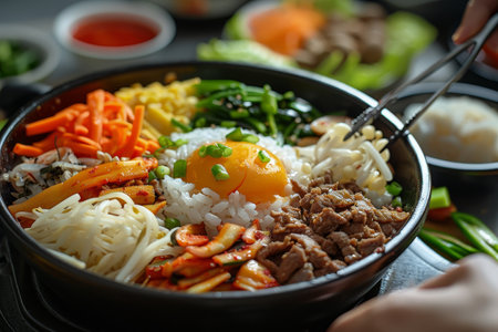 ?The camera is zooming in to show a tasty and popular Korean food called Bibimbap. Sometimes, it can be difficult to understand what is happening behind something.. AI Generated
