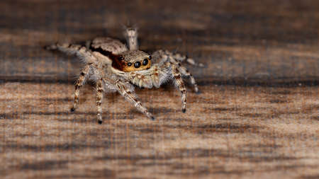 Jumping spider Male Plexippus petersi on wall with dried moss
