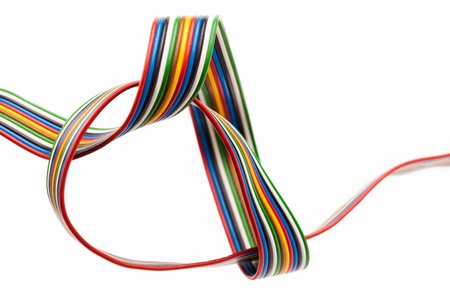 Multicolor cable isolated on white background, Networking concept. Jumper, IDC wire. Top view.