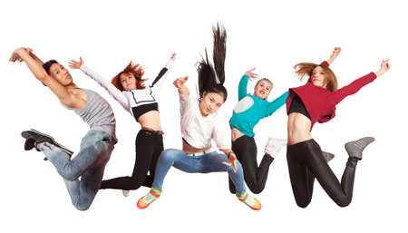 Young modern dancing group practice dancing isolated on white