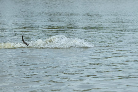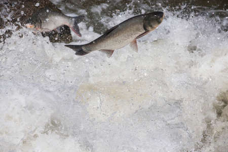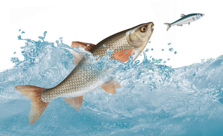 Chub fish jumping with splashing in water