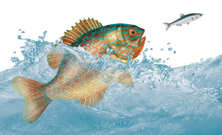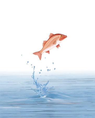 Fish jumping out of the water, isolated on a white background.