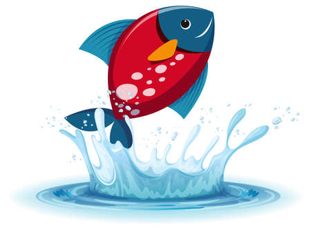 A water splash with fish on white background illustration