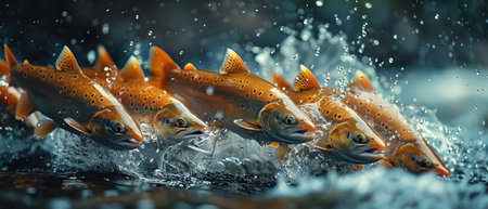 jumping out from water salmon on river background