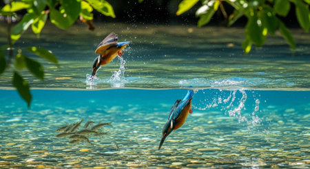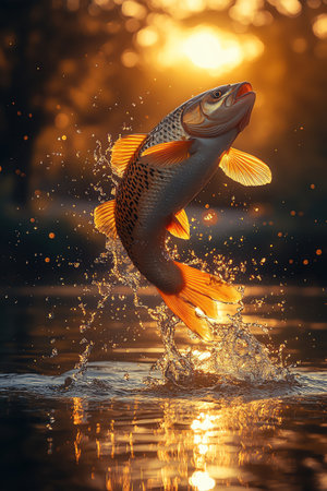Gold fish jumping out of a lake