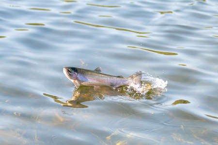 Rainbow trout salmon fish caught in water. Area fishing background