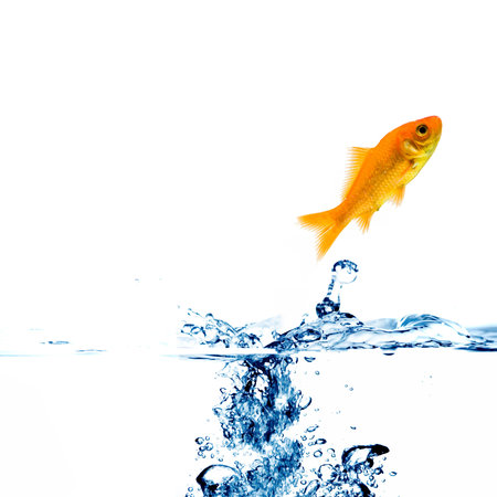 Goldfish jumping up with isolated background