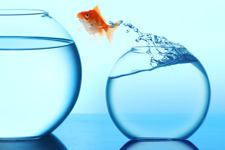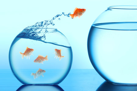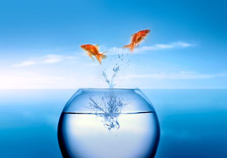 Anglefish jumping to Big bowl, Good Concept for new life, Big Opprtunity, Ambition and challenge concept.