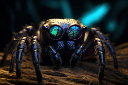 Intriguing Spider glowing eyes. Nature big. Generate Ai