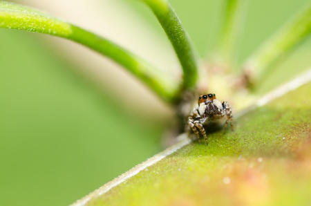Close up a Jumping spider on green leaf, Selective focus, Macro photos.