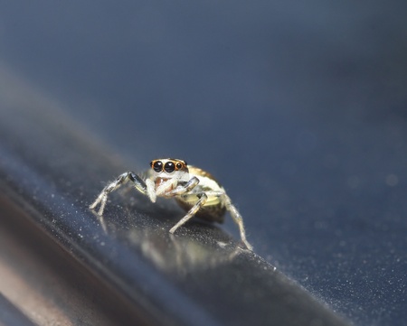 Jumping Spider (Salticus scenicus) on mirror background. High resolution photo. Full depth of field.