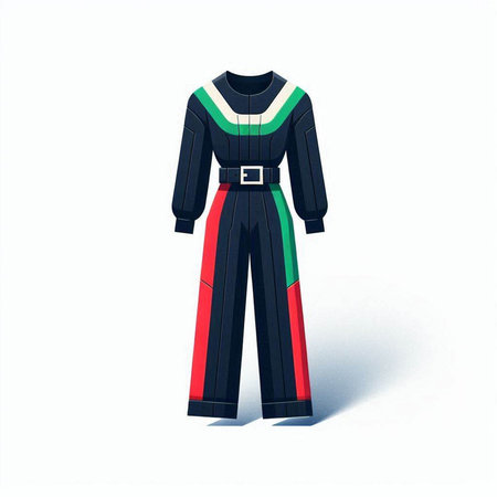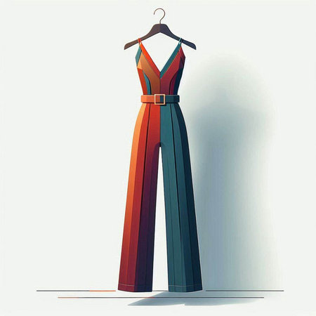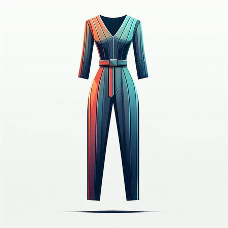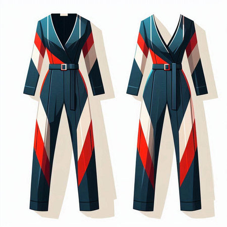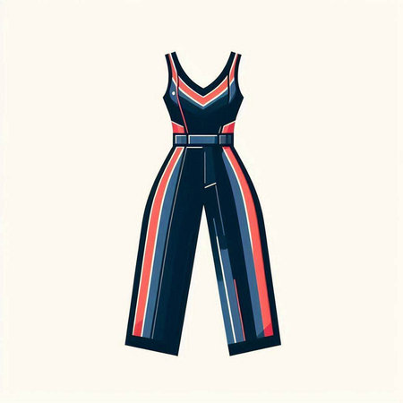 Women's black and red jumpsuit. Vector illustration of a woman's clothing.