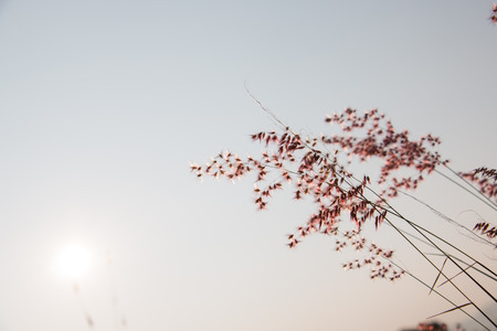 Beautiful grass flower field and light of sun. Background and texture concept.