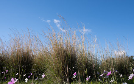 Pampas grass and blur background of blue sea in autumn, South Korea